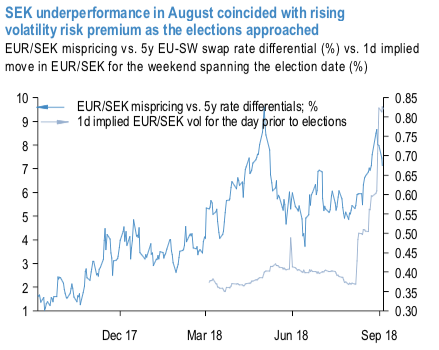 A benign outcome in line with the base case could result in some SEK outperformance as the August weakening in part has coincided with an increase in the risk premium for the election date (refer above chart), but we expect the SEK bounce to be shallow. Similarly, even a firm SEK print on Friday will not necessarily provide enough fodder for SEK bulls with three more CPI prints till the December meeting. Meanwhile, the sensitivity to a softer print is likely to be larger.