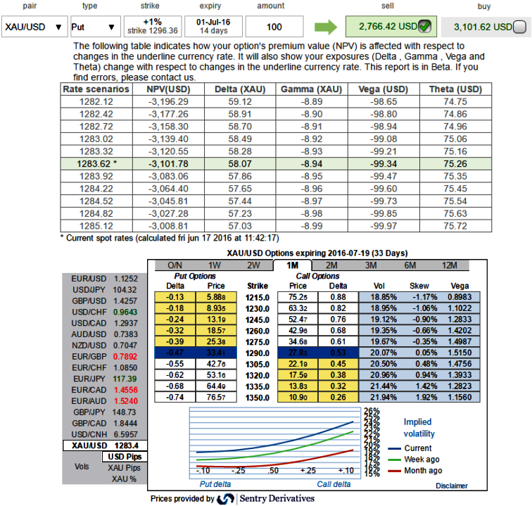 The implied volatility of 1W XAU/USD ATM contracts 17% but 23.52% and a tad above 20% for 2w and 1M tenors respectively, cheers..! Good news for writers.