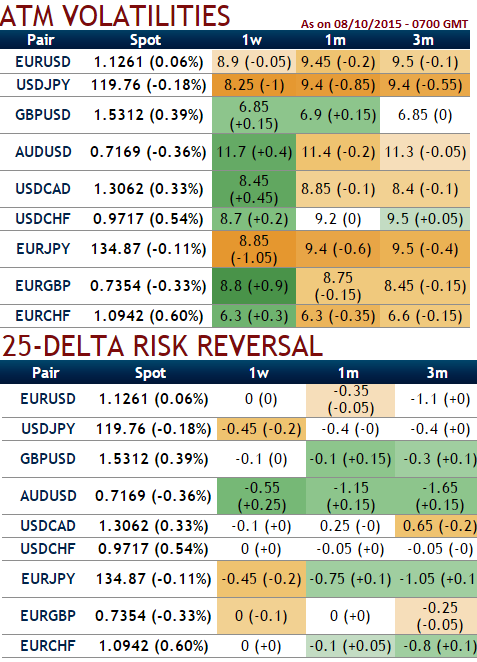 From the above table showing delta risk reversal and ATM volatility, it is evident and understood that this instrument has been absolutely stagnant and it would remain the same range in future but little bearish bias. As a result, to justify this stance, for short term traders the pair seems to remain in range between 0.9850 on northwards and we've reduced downside threshold a little more up to 0.9570 levels on southwards.