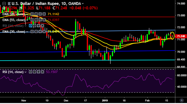 We prefer to take short position on USD/INR around 71.30, stop loss at 71.50 and target of 70.96.