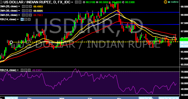 - It made intraday high at 66.59 and low at 66.48 levels.