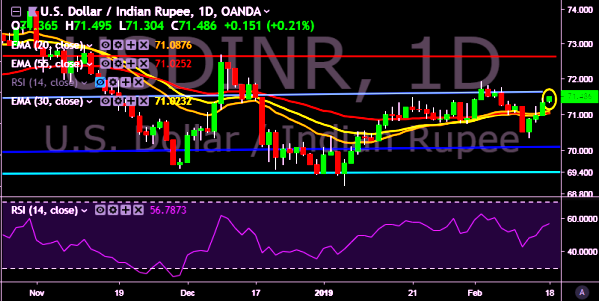We prefer to take long position on USD/INR around 71.40, stop loss at 70.96 and target of 71.71/72.02.