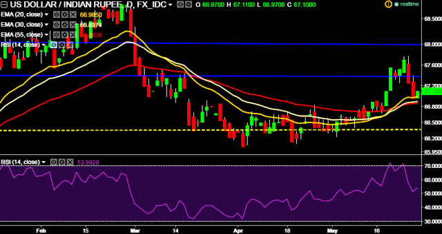 - USD/INR is currently trading around 67.05.