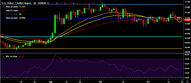 - It made intraday high at 70.96 and low at 70.76 marks.