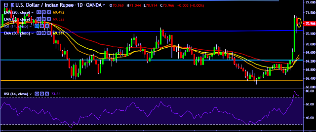 - It made intraday high at 71.04 and low at 70.91 marks.