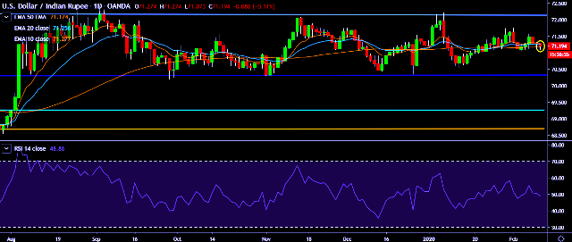 - Key resistances are seen at 71.49, 71.90, 72.17, 72.42, 72.68 and 72.89 marks respectively.