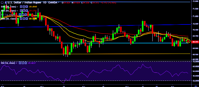 - USD/INR is currently trading around 69.30 marks.