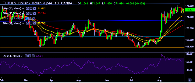 - It made intraday high at 71.64 and low at 71.49 marks.