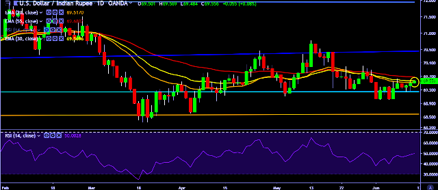 - Key resistances are seen at 69.52, 69.85, 70.20, 70.52, 70.85, 70.97, 71.23 and 71.51 marks respectively.