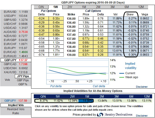 OTC Outlook: 1W and 2W ATM IV skews of GBPJPY cross are acting crazily in OTC markets, 1m IVs are flashing more than 14%. The skewness of implied volatilities are not certainly hinting any clarity in hedging sentiments but outwardly seems like slightly bullish bias in these tenors.