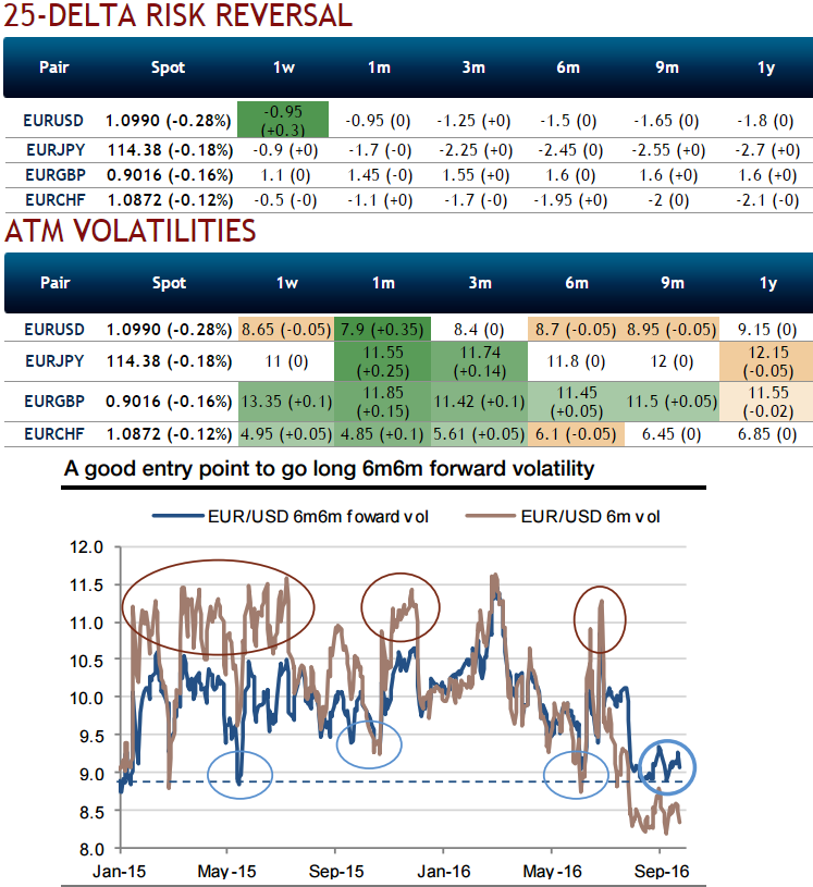 As you can observe that there is no significant change in the above nutshell evidencing risk reversals and implied volatilities of longer tenors even though the forecast profile is little changed from the trajectory we proposed several months ago, so Q4 - 1.08, in case, Fed disappoints Q1’2017 - 1.14, and Q2’2017 - 1.17.
