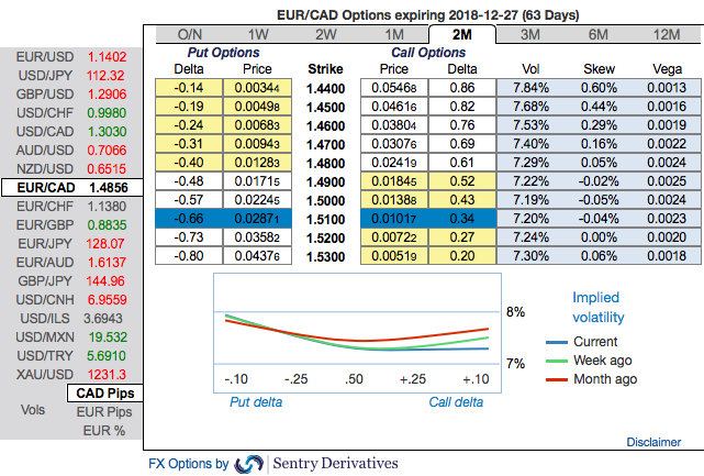 EURCAD OTC outlook: Implied volatilities of this pair have been on the lower side, well below 7.5%.