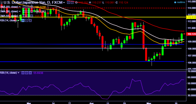 - It made intraday high at 110.23 and low at 110.06 levels.
