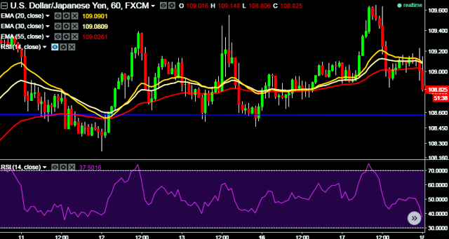 - Intraday bias remains neutral till the time pair holds initial support at 108.60 marks.