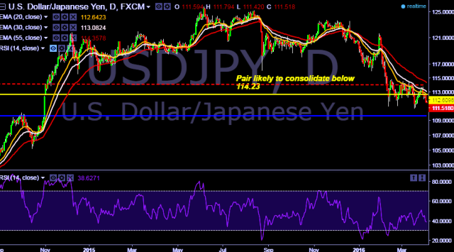 - It made intraday high at 111.79 and low at 111.42 levels.