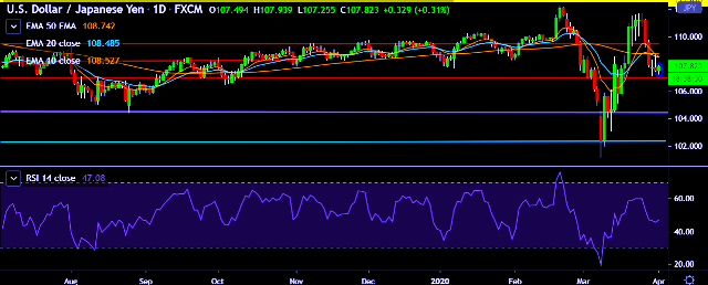 - USD/JPY is currently trading around 107.93 marks.
