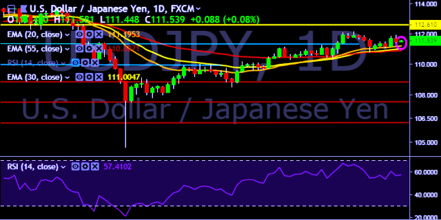 - It made intraday high at 111.58 and low at 111.44 levels.