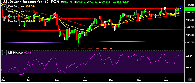 - It made intraday high at 109.56 mark and low at 109.45 levels.