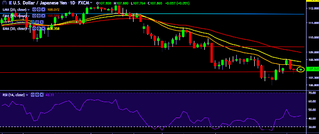 - USD/JPY is currently trading around 107.86 marks.