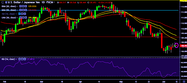 - It made intraday high at 108.56 and low at 108.44 levels.
