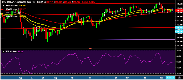- It made intraday high at 108.85 mark and low at 108.66 levels.