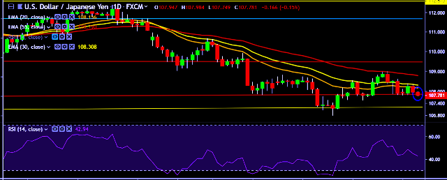 - It made intraday high at 107.98 and low at 107.71 levels.