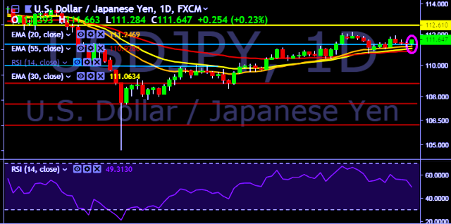 - USD/JPY is currently trading around 111.65 marks.