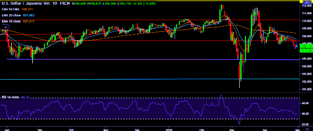 - On the other side, a sustained close below 106.60 will drag the parity down towards key supports around 106.15, 105.85, 104.00, 102.35 and 100.98 levels respectively.