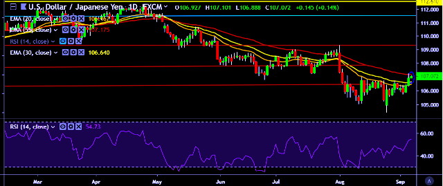 - It made intraday high at 107.10 and low at 106.88 levels.