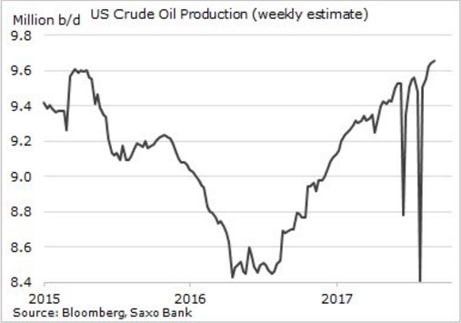 - Chart 1 shows crude oil production in the United States which has reached a new record high of 9.658 million barrels per day.