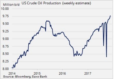 - Chart 1 shows crude oil production in the United States which has reached a new record high of 9.78 million barrels per day.