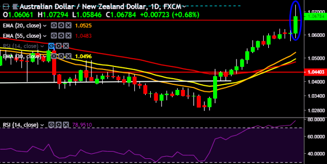 - Pair made intraday high at 1.0729 and low at 1.0584 marks.