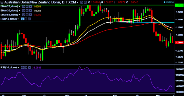 We prefer to take short position in AUD/NZD only below 1.0795, stop loss 1.0886 and target 1.0735/1.0651 marks.