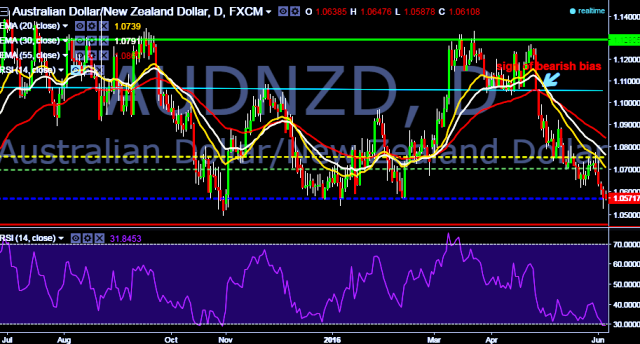 We prefer to take short position in AUD/NZD only below 1.0575, stop loss 1.0647 and target 1.0456 levels.