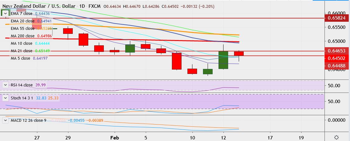 - On the downside, support is seen at 0.6421 (5-DMA), a break below could drag it till 0.6399.