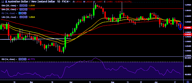 - AUD/NZD is currently trading around 1.0498 marks.