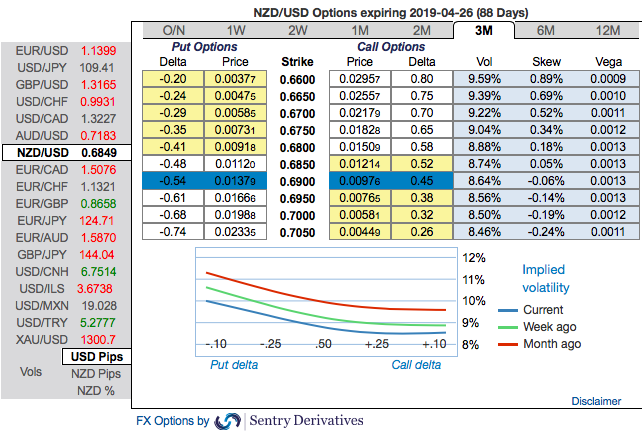 These positively skewed IVs of 3m tenors signify the hedgers’ interests to bid OTM put strikes up to 0.6650 levels (refer above nutshells evidencing IV skews).