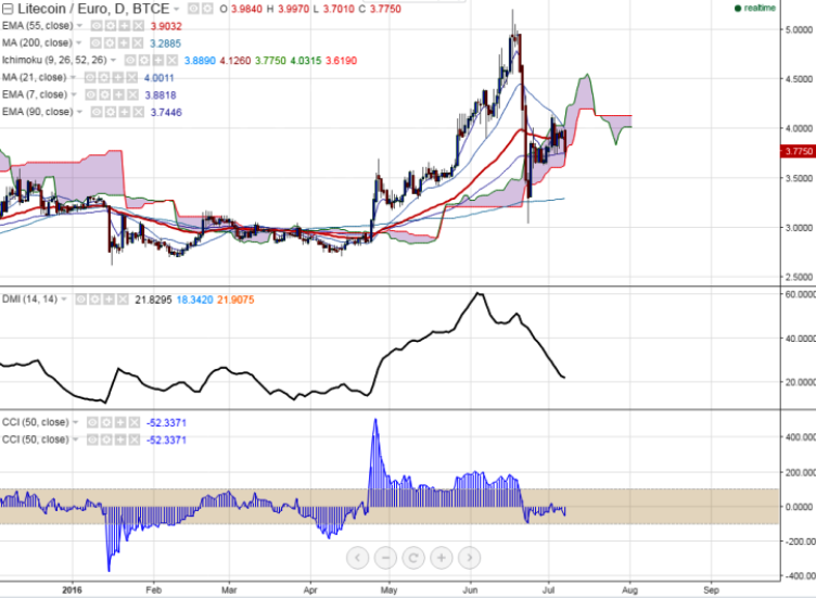 LTC/EUR is seen trading in red on Thursday and faces strong resistance. The pair has retreated after making a high of 3.9980 levels (BTCE) yesterday. It is currently trading around 3.77 at the time of writing.