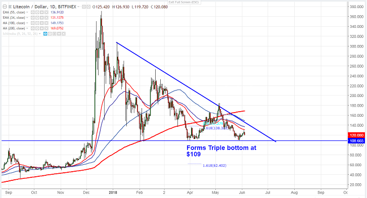 FxWirePro: LTCUSD upside capped by 34- day EMA, good to buy on dips
