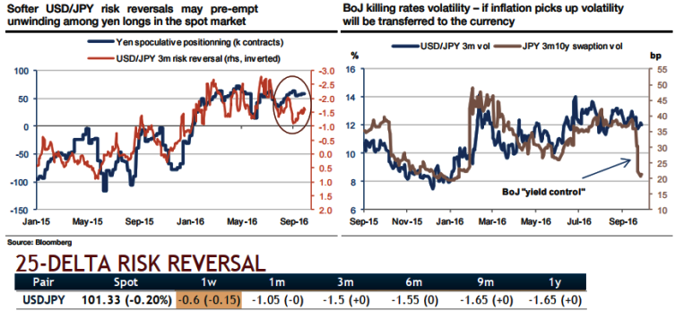 Softer options positioning may pre-empt an unwinding of yen longs: