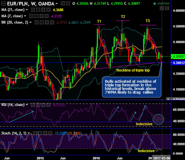 Last week it has tested supports at neckline, as a result, to begin this week we see attempts of bounce back but restrained resistance at 7WMA at 4.3135 levels.