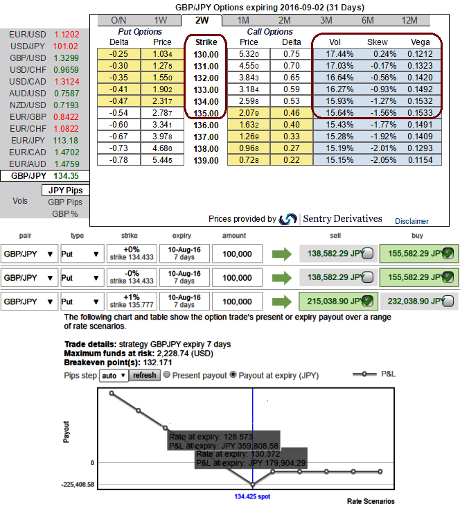 With the below technical reasoning, we think arresting potential downside risks of this pair by hedging through Put Ratio back Spread and accordingly, hedging framework was also suggested earlier, for now, it is reckoned that the underlying currency GBPJPY to make a large move on the downside.