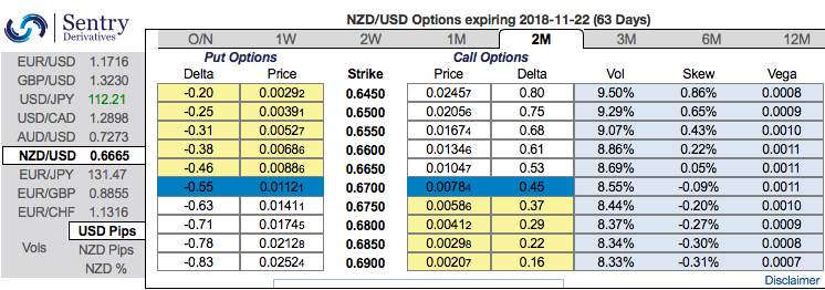 Most importantly, OTC market hedging sentiments still favor bears as the positively skewed IVs of 2m tenors signify the hedgers’ interests for downside risks. The bids have stretched for OTM put strikes upto 0.6450 levels (above nutshell).