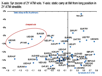 USDINR and USDIDR long-dated FX vols offer exceptionally low vol to carry.