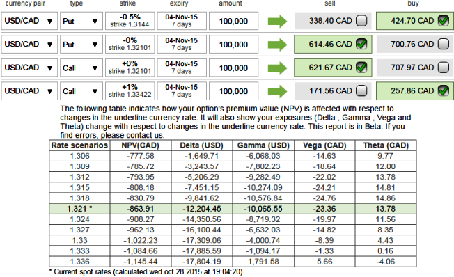 So in this case vega both on long position is reasonably acceptable. It is desirable that at maturity the underlying exchange rate of USD/CAD to remain near short strikes in order to achieve highest returns.