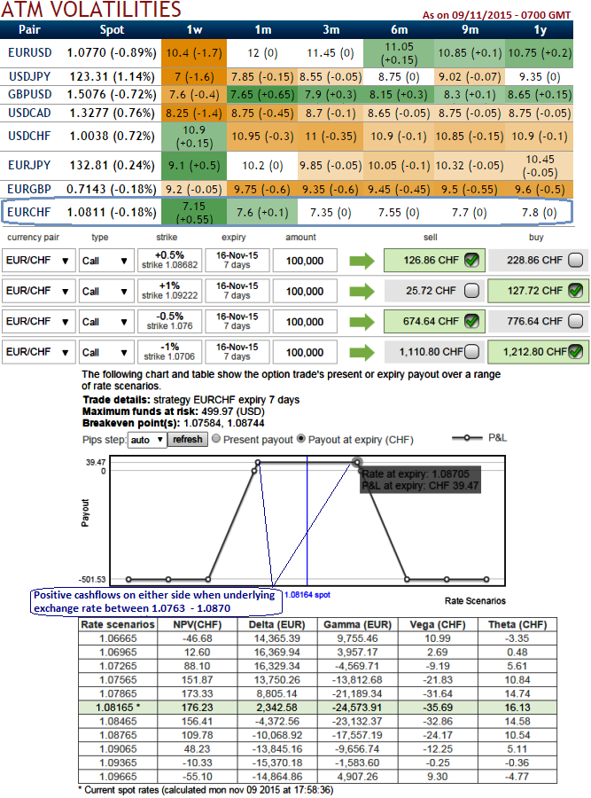 As there are significant data releases scheduled on CHF side for this week and near future EURCHF is likely to experience low volatility. You can make out from the nutshell, EURCHF is to have the least IV.