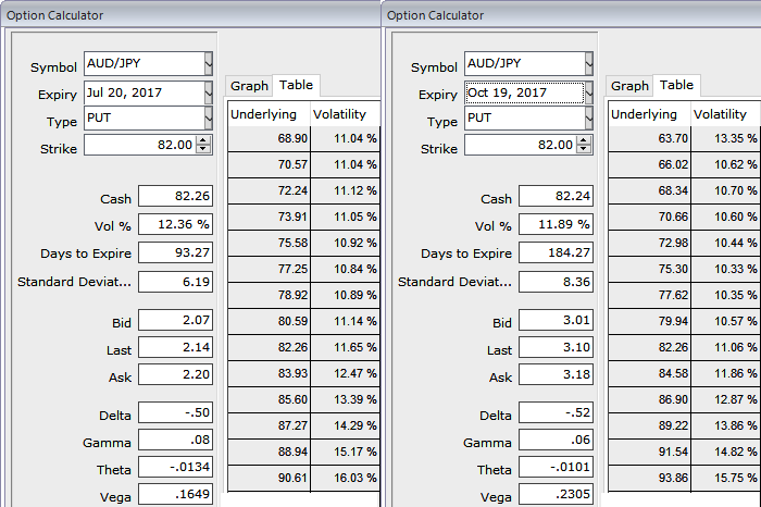 Buy 4m sell 2m AUDJPY OTM put at 79.0 strike in 1:0.753 notionals.