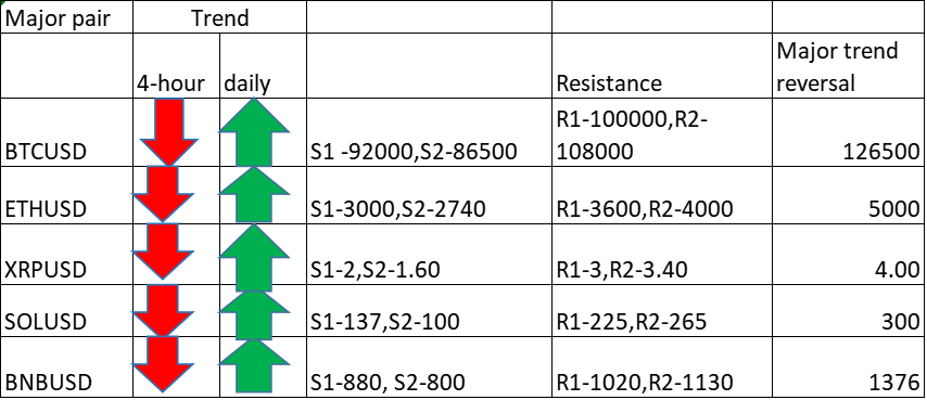 FxWirePro- Major Crypto levels and bias summary
