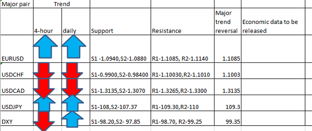 Major Pair levels and bias summary