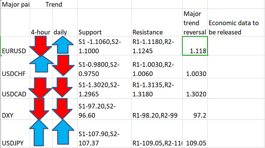 Major Pair levels and bias summary